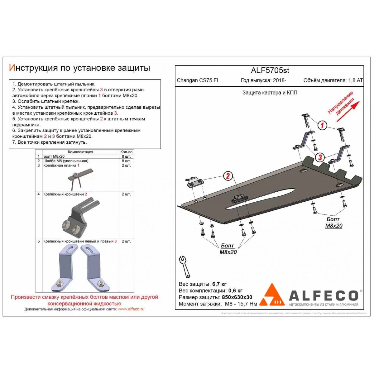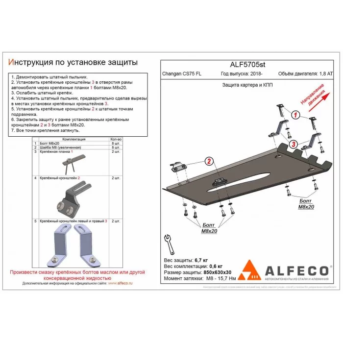 Защита картера и КПП для Changan CS75 2020-2024 алюминий