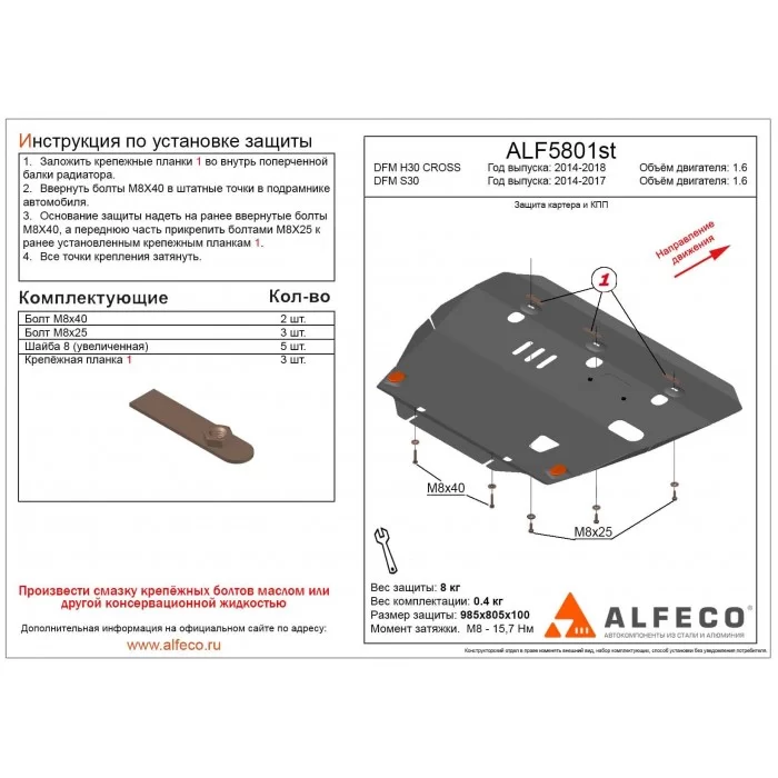 Защита картера и КПП для DongFeng S30 2014-2018 алюминий