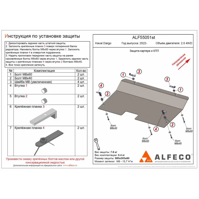 Защита картера и КПП для Haval Dargo 2022-2024 алюминий