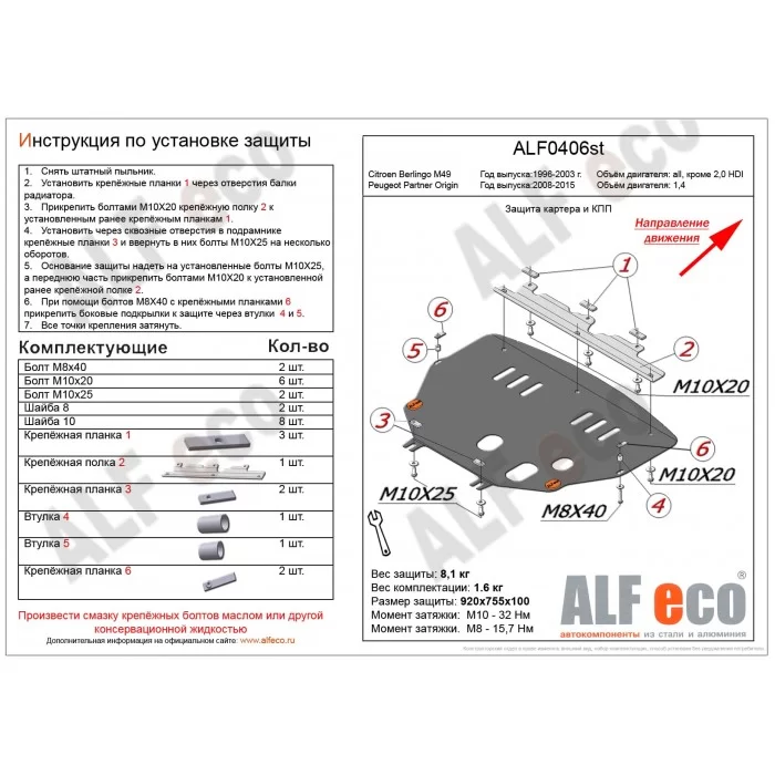 Защита картера и КПП для Renault Kangoo 1998-2008 сталь