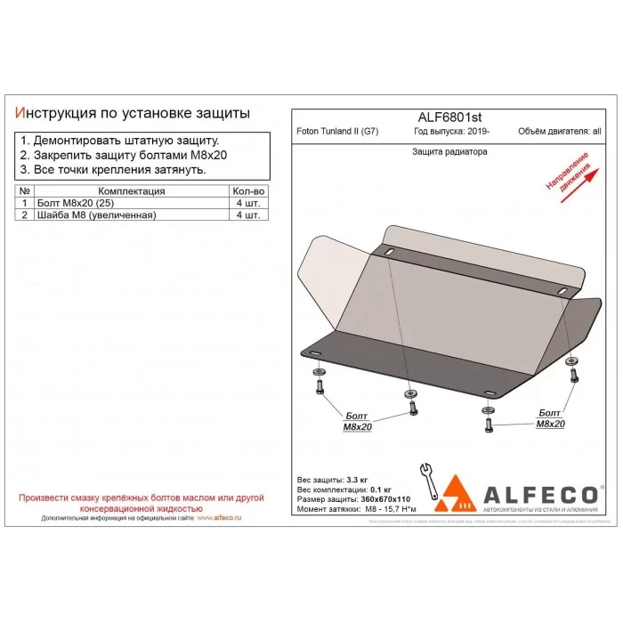 Защита радиатора для Foton Tunland 2017-2021 сталь